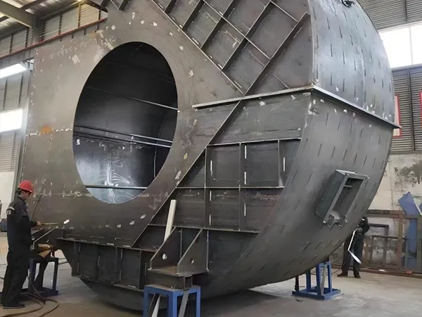 हाम्रो मुख्य निश्चित कार्यशाला उच्च परिशुद्धता सीएनसी लेजर/प्लाज्मा काट्ने मेसिन, ठूला रोलिङ मेसिन, स्वचालित वेल्डिङ रोबोट, र डायनामिक ब्यालेन्सिङ क्यालिब्रेटरहरू सहित उन्नत धातु प्रशोधन र निर्माण उपकरणहरूको पूर्ण सेटले सुसज्जित छ। यसले प्रत्येक चरणमा उत्कृष्ट शुद्धता र स्थिरता सुनिश्चित गर्दछ - ब्ल्याङ्किङ र गठनदेखि वेल्डिङ र एसेम्बलीसम्म - धुलो हटाउने फ्यानहरू र उच्च-दबाव फ्यानहरू र औद्योगिक ब्लोअर जस्ता उत्पादनहरूको स्थिरता र स्थायित्वको लागि बलियो जग राख्छ।